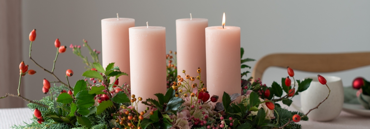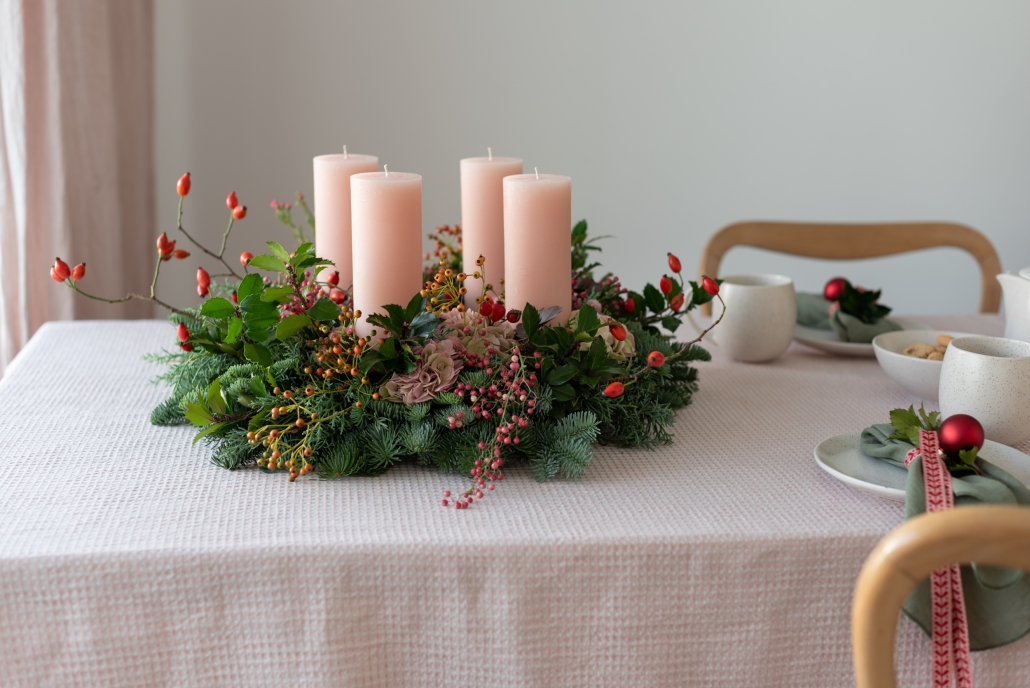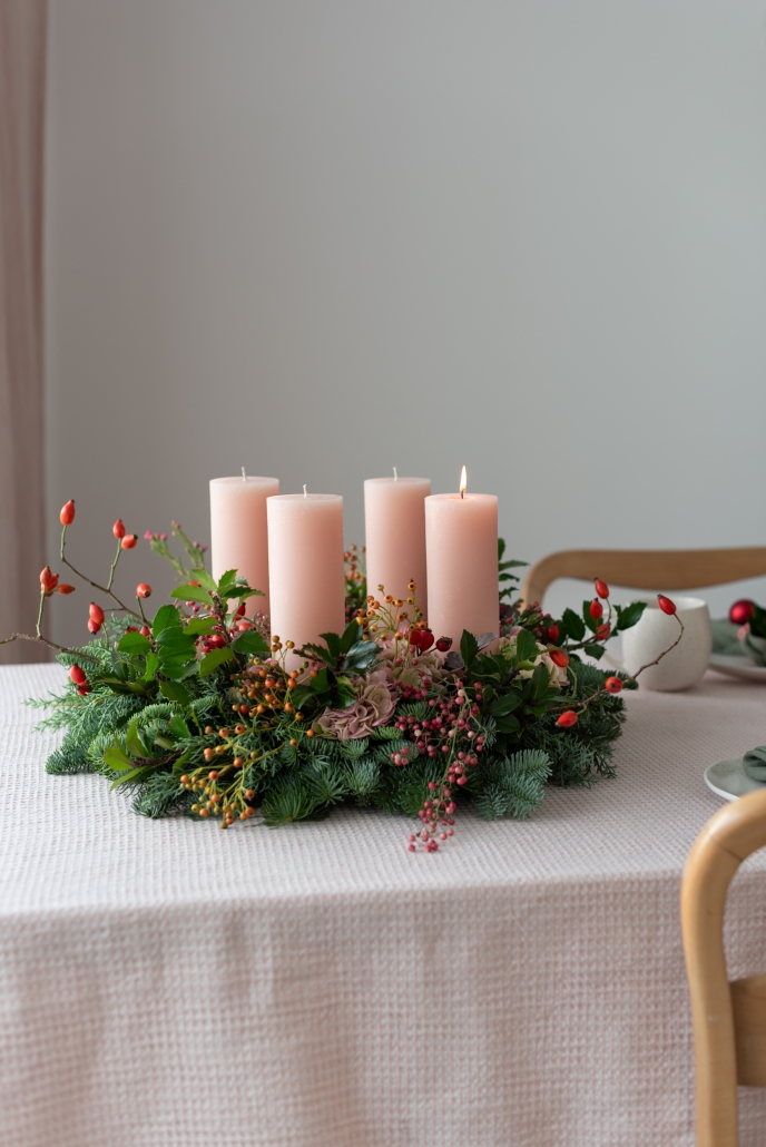 Mit einem frisch gesteckten Adventskranz wird der Klassiker neu interpretiert. Die handgefertigte Variante verbindet natürliche Materialien mit einer besonders anwenderfreundlichen Technik und sorgt für einen individuellen Look – ganz gleich, ob dezent, verspielt oder üppig.